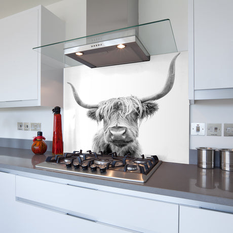 Highland Cow III Toughened Glass Kitchen Splashback - Adhesive Included