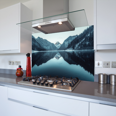 Lake & Mountains Toughened Glass Kitchen Splashback - Adhesive Included